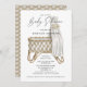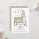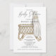 Un élégant lit bébé en osier de bambou moderne style boho modèle bébé sans sexe invitation baby shower neutre. Une élégance simple. tomes beige sépia neutre sur blanc. Couleurs sereines et muettes. L'envers de l'invitation a un motif de coeur blanc.