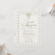 Si vous cherchez une invitation de baby shower neutre et unique, élégante et facile à personnaliser, ceci est parfait pour vous. Comme vous le voyez, il comporte un script rétro écrit à la main d'une petite oie stupide est sur le point d'être en liberté en vert. Et une oie dessinée à la main et un ruban. Et cadre vert de bordure et carrés à damiers verts. Tout vert et sur arrière - plan crème. Très facile à customiser et à utiliser. Alors attrapez-le et mâchez vos invitations très engagés.
