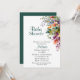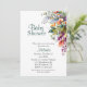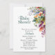 Invitation de baby shower blanc genre neutre, avec amoureux fleurs sauvages d'aquarelle colorée, sur le haut droit. Personnalisez tous les champs de texte de votre événement baby shower.