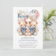 Carte d’invitation de Baby shower Nounours TWINS Blue Balloons. Célébrez l'arrivée prochaine de votre précieux bébé avec cette belle carte d'invitation. Tous les textes sont pré-arrangés pour que vous personnalisiez facilement et rapidement avec vos détails baby showers.