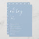 Gardez-le doux et simple avec notre Blue Minimalist Oh Boy Baby shower Invitation. Doté d'un arrière - plan bleu pastel doux et de trois coeurs appétissants, ce design moderne apporte un look frais et propre à votre célébration. Parfait pour les amateurs d'esthétique minimaliste avec une pointe de charme, cet invitation donne un ton décontracté et joyeux pour accueillir votre petit. Célébrez votre bébé garçon avec style avec cette invitation sans effort! BSS1041