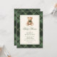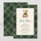 Célébrez une future maman avec ces invitations pour baby shower en forme d'ours en peluche à carreaux vintage. Avec un fond riche en tartan vert et une couture élégante en faux or, ce design allie tradition classique et charme moderne doux.