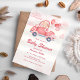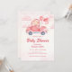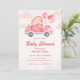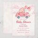 Célébrez votre petit en chemin avec cette invitation baby shower rose avec un adorable ours conduisant une voiture au décor de coeur entourée de nuages et de ballons. Avec des textures d’aquarelle et une palette pastel douce, c’est le choix idéal pour une douche bébé ou tout événement fantaisiste. Idéal pour : Fêtes de la petite fille baby showers à thème Valentine Whimsical, amusant parents Événements du printemps et de l'été