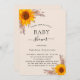 Pour un baby shower de style boho moderne. Un arrière - plan d'or rose roux. Décoré de tournesols, de pelouse de pampas. Personnalisez et ajoutez un nom et des détails du parti.
