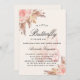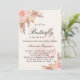 Pour un baby shower de style boho moderne. Arrière - plan beige moelleux. Décoré de fleurs roses, de roses, d'herbe de pampas et d'un papillon. Personnalisez et ajoutez un nom et des détails du parti.