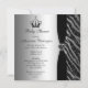 Invitations glamour noir et argent personnalisables neutres Baby Shower pour les filles ou les garçons. Élégant et élégant imprimé zèbre rayures d'animaux parties scintillant des invitations à l'air avec une belle Princesse / couronne Prince imprimé avec des diamants et des bijoux noirs et un joli bijou imprimé à coeur de poutres et joli ruban imprimé sur un arrière - plan platine argenté dégradé de glamour. Ces invitations élégants et sophistiqués sont décorés de part et d'autre. Des invitations branchées, chic, classe, modernes à la mode.VEUILLEZ NOTER : Tous les produits sur Zazzle ont des images imprimées à plat. Le texte, la police et la couleur de la police sont tous personnalisables. Si vous avez besoin d'aide pour customiser votre produit, veuillez me contacter par l'intermédiaire de mon magasin et je serai heureux de vous aider.