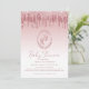 Célébrez l'arrivée prochaine dans un style pétillant avec cette invitation au baby shower glamour avec des gouttes de parties scintillant rose chatoyantes et des oeuvres d'art sur les pieds bébé étincelants. L'arrière - plan en ombré doux et le motif en épingle de sécurité sur le dos ajoutent une touche douce et moderne. Parfait pour un baby shower de luxe, girly honorant maman-to-be avec élégance et charme. Personnalisez facilement avec vos détails d'événement.
