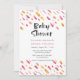 Invitation vos invités à votre baby shower avec cette invitation de Baby shower de peinture abstraite rose et orange amusante avec des touches de peinture rose et orange et un arrière - plan à motifs assorti. © Mini Moi Prints