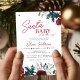 Hiver moderne Père Noël Baby sur le chemin thème Noël fille ou garçon baby shower fête invitation modèle avec belle aquarelle fleurs rouges et blanches avec pignons de pin et vert feuillage saisonnier avec un chic script de typographie manuscrite. ++++++++++++++++++++ Facile à personnaliser avec vos détails ! +++++++++++++++++++++++ L'invitation est adaptée pour des fêtes de Noël élégantes et sans baby shower.