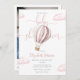 Cette charmante invitation au baby shower comporte une jolie montgolfière rose et des nuages, ainsi qu'une élégante typographie de script. Avec votre code QR de registre et photo spéciale au verso. Conçu par Thisisnotme©