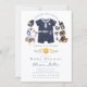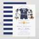 Célébrez votre petit officier en route avec cette adorable invitation de baby shower sur le thème de la police. Avec une tenue de bébé policier charmante, des accessoires mignons et un fond à rayures bleu marine coordonné, ce design allie un charme ludique à un look moderne et épuré. Parfait pour les baby showers pour garçons, les familles de forces de l'ordre ou les événements sur le thème "Tous les véhicules sont mobilisés", cette invitation crée une première impression soignée et mémorable. Entièrement personnalisable selon les détails de votre événement.