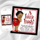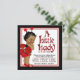 Invitation pour un baby shower coccinelle avec une adorable petite fille afro-américaine portant une tenue de coccinelle à pois rouge et noir sur un fond joli rouge et noir avec du texte coccinelle. Vous pouvez facilement personnaliser cette adorable invitation rouge et noir pour votre événement en ajoutant simplement vos détails dans le style de police et la couleur que vous préférez.