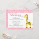 Invitation Baby shower pour fille avec girafe au noeud rose