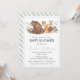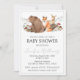 Aquarelle bois forêt animaux baby shower invitation. Bébé garçon douche ou invitation sans sexe. Ours, renard, hérisson, cerf, champignons et feuilles forestiers.