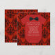 Adorable damassé rouge et noir, nœud papillon noir et bébé en body rouge invitation pour la baby shower d'un petit garçon rouge et noir. Cette invitation de baby shower au damassé rouge et noir est facilement personnalisable pour votre événement en ajoutant vos informations, style de police, taille et couleur de police, et texte. Veuillez noter que toutes les conceptions d'invitations que vous trouverez sur Zazzle sont des créations graphiques imprimées sans véritables bijoux, rubans, reliefs, gaufrages ou pièces ajoutées.