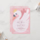 Baby shower de filles mignonnes illustration d'une princesse cygne portant une tiare de couronne avec un arrière - plan rose. Cette invitation personnalisable est parfaite pour les baby showers à thème cygne pour les petites filles. L'arrière de cette invitation de baby shower princesse cygne a la même couleur rose avec une dentelle blanche douce et délicate.