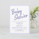 Cette invitation au baby shower moderne et ludique présente une typographie de script "Baby shower" en violet ainsi que des informations personnalisables en texte simple et classique. Un mignon motif d'aquarelle en violet, rose et bleu orne le dos.