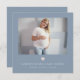 Invitation Baby shower QR CODE photo bleu ciel minimal