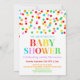 baby shower texte personnalisé dans un motif de confetti arc-en-ciel.