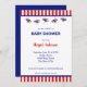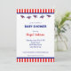 Invitation Baby shower rayé bleu et rouge de l'avion