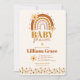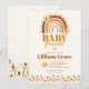 Célébrez en style avec cette invitation rétro baby shower boho! Doté d'un arc-en-ciel aux tons chauds, de fleurs ludiques et d'une police serif audacieuse, ce design allie charme vintage et fantaisie moderne. Parfait pour célébrer une maman d'être avec un amour pour tout ce qui est terre, artistique, et adorable. Entièrement personnalisable - il suffit d'ajouter vos détails et d'envoyer un peu d'amour!