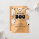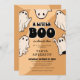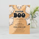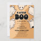 Jolie invitation à la douche d'halloween avec un arrière - plan orange super, un groupe de fantômes rétro, le drôle en disant "un petit boo est presque dû", et un modèle textuel moderne facile à personnaliser, vos invités mourront de mettre la main sur ces invitations!
