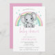 Invitation Baby shower rose arc-en-ciel joli éléphant