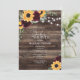Cette invitation à la douche nuptiale tournesol et Rose de verdure rustique présente des fleurs de tournesol aquarelle et des roses bordeaux avec des accents verts sauge sur un arrière - plan de bois. Il est parfait pour un baby shower d'été ou d'automne.