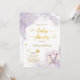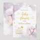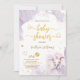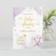 Invitation Baby Shower Fille Rose Violet Aquarelle Or. Eléphant mignon, papillon, coeurs et points dorés autour, écriture manuscrite élégante et fond violet clair aquarelle. Ce design est un mélange de styles fantaisistes, modernes et élégants. N'oubliez pas de découvrir la collection complète.