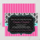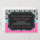 Une élégante invitation au Baby shower, damas rose, noir, bleu et blanc avec bandes et pois. Par Caroline Leskiw sur Happy Pixel Designs