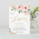 Invitation Baby shower, rose et or Aquarelle Fleurs