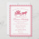 Calèche princesse et cheval, invitation baby shower rose avec pois-pois roses sur le dos. Personnalisez cette petite princesse sur le chemin, invitation baby shower comme préféré