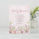 Belle invitation au Baby shower à fleurs roses avec un arrière - plan à motifs floraux. © Mini Moi Prints