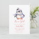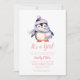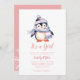 Belle invitation de Baby shower de manchot d'hiver pour fille Collection : flocons de neige.https://www.zazzle.com/collections/winter_penguin_pink_blush_collection-119211276724225564