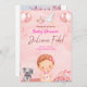 Fêtez l'arrivée d'une petite princesse avec cette adorable invitation au baby shower rose. Doté d'un design d'aquarelle charmant avec une petite fille, un koala mignon, une cigogne portant un ours en peluche et des ballons pastel, cet invitation est parfait pour une fête douce et élégante. Personnalisez cette carte baby shower imprimable pour votre événement et créez