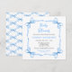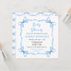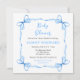Cette invitation de baby shower mignonne et fantaisiste présente un cadre de ruban bleu adorable. Le texte combine une écriture manuscrite et des polices sans serif pour un look élégant et moderne.