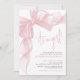C'est une fille ! Invitation à une baby shower. Ce design doux et ludique présente un ruban aquarelle rose blush avec un accent de cadre de ruban sur le haut et le côté gauche, ajoutant une touche charmante et fantaisiste. La phrase « C'est une fille ! » est affichée en haut dans un script élégant, donnant le ton à une célébration joyeuse.