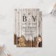 Une jolie invitation à baby shower rustique avec un bois de grange blanc et brun blanc à deux tons avec ours en peluche et hochet. Pour une ambiance moderne et rustique, avec l'expression "oh garçon" !