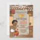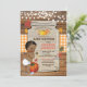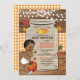 Invitation au baby shower BBQ non sexiste avec bocal de mason et lampe à cordes sur arrière - plan en bois rustique et image vintage de poupée de bébé.