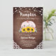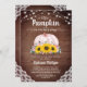 Cette chute rustique "un petit citrouille est en route" invitation à la douche bébé avec citrouille aquarelle, fleurs roses et tournesols sur un arrière - plan en bois avec dentelle et lampes à cordes. Personnalisez-les avec votre texte.