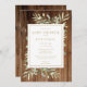 Doté de délicats feuilles d'aquarelle en bois sur un arrière - plan en bois rustique. Ce baby shower élégant et neutre pour les femmes ou l'invitation à saupoudrer peut être personnalisé avec vos informations de célébration spéciales dans une élégante typographie dorée. Conçu par Thisisnotme©