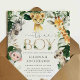 Célébrez l'arrivée de votre petit sauvage avec cette adorable invitation de Baby shower Safari Animals ! Avec des animaux de la jungle aquarelée peints à la main - dont un lion, une girafe, un éléphant et un zèbre - nichés dans une végétation luxuriante, cette invitation apporte une touche ludique et élégante à votre événement. Parfait pour les baby showers, ce design ajoute du charme à toute célébration. Personnalisez facilement les détails en ligne avec l'éditeur convivial de Zazzle - customisez le nom, la date, l'heure, l'emplacement et les informations RSVP en quelques clics ! Que vous soyez l'hôte d'un baby shower virtuel ou d'un rassemblement en personne, cette invitation fantaisiste de safari donne le ton pour une journée inoubliable.