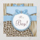 Adorable invitation au baby shower de léopard et de tigre bleu brun et bébé. Cette élégante invitation au baby shower marron et bleu est facilement customisée pour votre événement en ajoutant simplement les détails de votre événement, le style de police, la taille et la couleur de police et le libellé. Veuillez noter que tous les autocollants, cartes et modèles d'invitation que vous trouverez sur Zazzle sont des graphiques imprimés sans bijoux, arcs, surélevés, gaufrés, ni pièces ou pièces ajoutées.