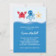 Invitation très mignonne et colorée. Comprend un crabe, une pieuvre et un poisson étoilé aux couleurs vives. Idéal pour les fêtes et événements sur l'océan et la plage. Design Unisex.