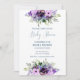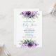baby shower simple à fleurs violettes et vertes Invitation avec texte bleu marine et aquarelle feuille botanique et fleurs