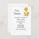 Célébrez l'arrivée prochaine de votre paquet de joie avec nos invitations pour la douche bébé. Adorée dans le coin supérieur droit avec un adorable canard aquarelé, cette invitation réchauffe les coeurs et donne le ton pour une journée aussi inoubliable que délicieuse. La représentation douce et ludique du canard crée une atmosphère douce et accueillante, parfaite pour réunir amis et famille pour prendre un bain d'amour avec votre petit. Avec un texte personnalisable pour s'adapter à vos détails, ces invitations ne sont pas seulement un héraut des joies à venir, mais un souvenir inoubliable de ce temps précieux.