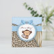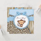 Cartons d'invitation pour une fête de bébé garçon singe brun et bleu avec imprimé léopard marron et tigre. Cette invitation de baby shower singe brun et bleu est facilement personnalisable pour votre événement en ajoutant vos détails d'événement, style de police, taille et couleur de police, et libellé.