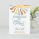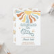 Cette adorable invitation au boho présente un soleil aquarelle, dressé contre un doux arrière - plan blanc vintage. Les tons jaunes, oranges et bleus, associés à la police rétro, donnent une atmosphère les années 70 charmant. Entièrement personnalisable avec vos détails, cette invitation est parfaite pour accueillir votre petit rayon de soleil.