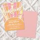 Célébrez l'arrivée à venir avec cette invitation rétro au baby shower sur le thème du soleil. Le design se compose d'un motif rayé de soleil éclatant en blanc cassé, rose, orange et jaune, créant un cadre dynamique et joyeux. En haut, l'expression "Un petit rayon de soleil est en route !" s'affiche dans un mélange amusant d'une police de style rétro croustillante, d'un script audacieux et d'une simple police sans serif, lui donnant cette image de retour parfait. En bas, le centre du soleil contient tous les détails importants de l'événement, coiffé d'un mélange coloré de rose, d'orange et de jaune pour s'accorder avec le thème rétro de l'éclatement de soleil. Sur le dos, une version plus grande du soleil coloré brille à travers la carte. Si vous voulez un look plus audacieux, vous pouvez facilement supprimer le calque doux transparent dans l'éditeur pour rendre les couleurs pop encore plus. Ce design penche un peu plus vers une petite fille mais a toujours une sensation ludique et animée qui est parfait pour n'importe quel baby shower sur le thème du soleil. C'est un mélange amusant de styles rétro, boho et moderne, parfait pour célébrer la future maman et son petit rayon de soleil. Retro Sunburst Un petit rayon de soleil Baby shower Invitation pour bébé fille rose orange jaune. Disponible sous forme d'invitation imprimée, ou en tant qu'invitation numérique téléchargeable que vous pouvez envoyer par e-mail ou avoir imprimé localement !