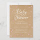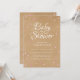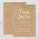De jolis cœurs roses sont dispersés autour de vos détails personnalisés en texte blanc sur un fond rustique kraft bohème avec des cœurs roses supplémentaires dispersés au verso de cette invitation chic pour un baby shower, un sprinkle ou une fête de couples. Conçue par Thisisnotme©
